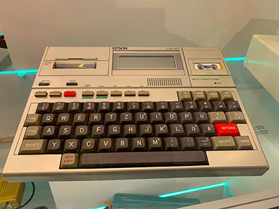 In seinem Lehrstuhl hatte mein Vater Zugang zu den neuesten Geräten und konnte diese auch mit nach Hause bringen. So machte ich noch vor der Einschulung erste Programmierversuche auf einem programmierbaren Taschenrechner TI-59 von Texas Instruments. Die Programme wurden auf kleinen Magnetkarten aufgezeichnet. Auch ein Epson HX-20 Handheld war mal kurz zu Gast. Den sah ich viele Jahre später wieder - im Spionagemuseum in Berlin.